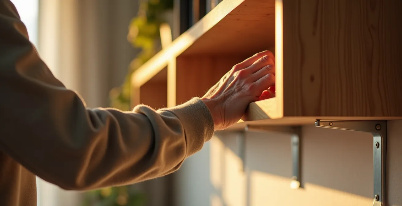 Vous avez beau avoir la meilleure fixation du monde, si le meuble lui-même est un modèle d’instabilité, vous ne faites que retarder le problème. Un maillon souvent oublié de la chaîne de charge est la répartition du poids à l’intérieur même du meuble. L’erreur classique est de ranger les objets par fréquence d’usage ou par esthétique, en plaçant par exemple les beaux livres ou les objets lourds en haut des étagères pour les mettre en valeur. C’est une hérésie en termes de stabilité.