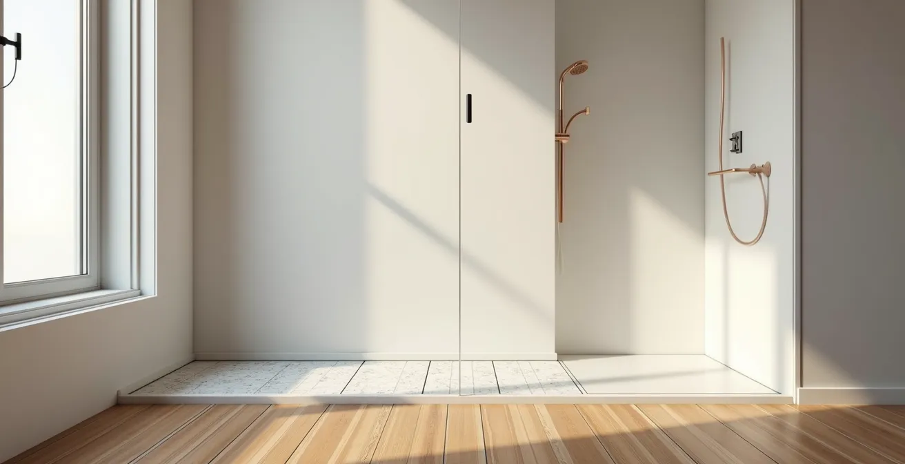 L’impact de ce détail technique est loin d’être négligeable. Pour une personne se déplaçant avec un déambulateur ou un fauteuil roulant, un seuil de 2 cm n’est pas une simple gêne, c’est un mur. Comme le montre l’expérience sur le terrain, il empêche systématiquement le passage autonome et rend obligatoire l’intervention d’un tiers pour franchir l’obstacle. La douche, pensée pour l’autonomie, devient alors une nouvelle source de dépendance. Ce ressaut crée également une zone d’achoppement où l’eau peut stagner, favorisant le développement de moisissures et compliquant le nettoyage. La quête du plain-pied intégral n’est donc pas une coquetterie, mais une exigence absolue de sécurité et de dignité.