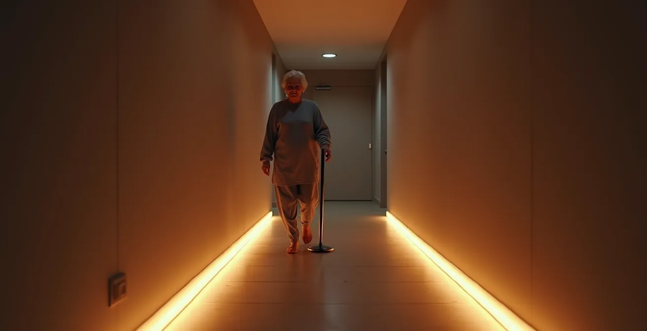 Se lever la nuit, que ce soit pour aller aux toilettes ou boire un verre d’eau, est un acte anodin pour beaucoup. Mais pour une personne âgée, ce simple déplacement se transforme en un parcours à haut risque. La combinaison de la somnolence, de la désorientation due à l’obscurité et d’une baisse naturelle de l’acuité visuelle et de l’équilibre crée un cocktail dangereux. Les chiffres officiels confirment cette réalité : en France, on estime que 2 millions de chutes de personnes âgées de plus de 65 ans sont responsables de 10 000 décès et de 130 000 hospitalisations chaque année. Si toutes ces chutes ne surviennent pas la nuit, celles qui s’y produisent sont souvent aggravées par le manque de repères.