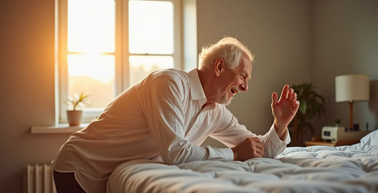 Cette appréhension sourde chaque matin au moment de poser le pied par terre. Ce moment où un simple mouvement de transition, celui de passer de la position allongée à la verticale, peut déclencher une douleur aiguë dans le bas du dos. Pour toute personne souffrant de lombalgie chronique ou de discopathie, cette scène est un rituel redouté. Les conseils habituels, comme « rouler sur le côté avant de se lever », sont connus de tous. Ils sont utiles, mais souvent insuffisants, car ils traitent le symptôme sans adresser la cause profonde : une mauvaise gestion de la pression sur les disques intervertébraux.